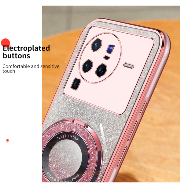 Funda para Teléfono de TPU con Soporte Redondo y Purpurina Degradada Plateada para Vivo X80 Pro (Morado)