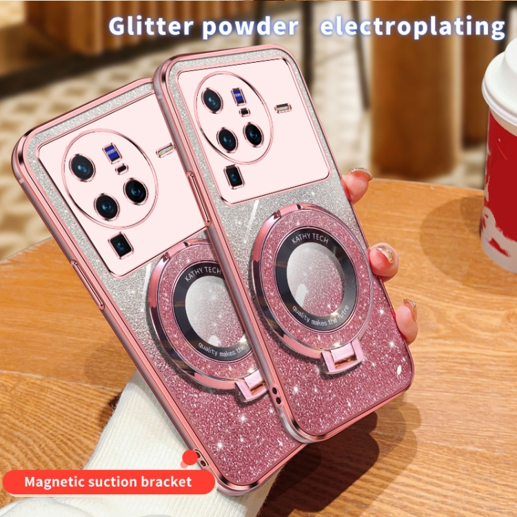 Funda para Teléfono de TPU con Soporte Redondo y Purpurina Degradada Plateada para Vivo X80 Pro (Negra)