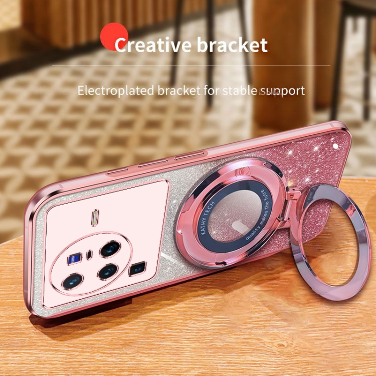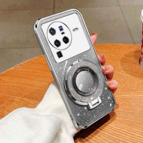Funda para Teléfono de TPU con Soporte Redondo y Purpurina Degradada Plateada para Vivo X80 Pro (Plateada)