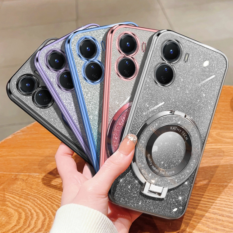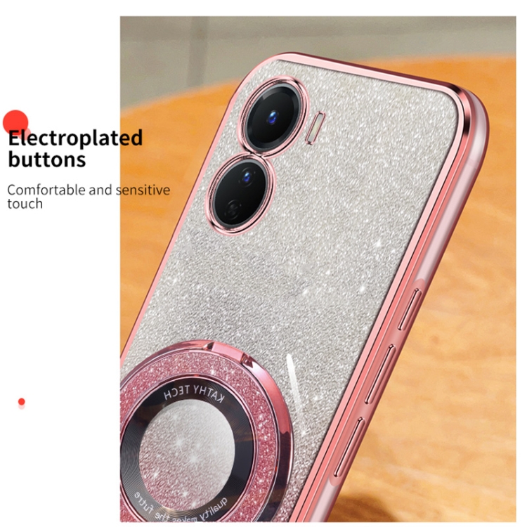 Funda para Teléfono de TPU con Soporte Redondo y Purpurina Degradada Plateada para Vivo Y16 (Rosa)