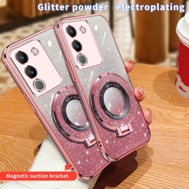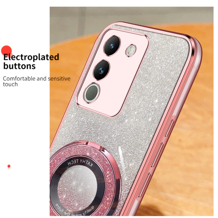 Funda para Teléfono de TPU con Soporte Redondo y Purpurina Degradada Plateada para Vivo Y200 Global/V29E (Rosa)