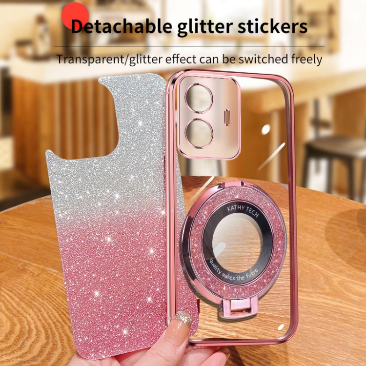 Funda para Teléfono de TPU con Soporte Redondo y Purpurina Degradada Plateada para Vivo Y77E (Negro)