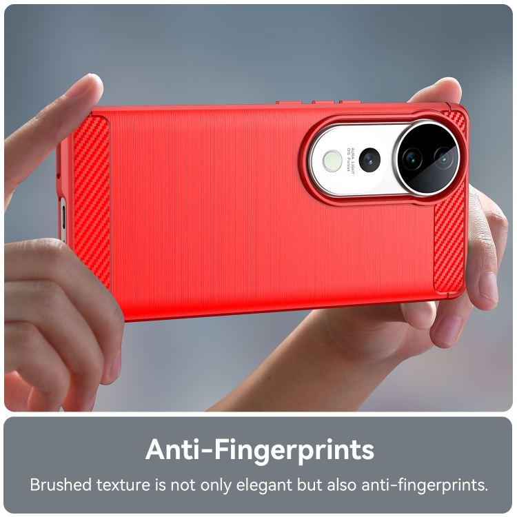 Funda para Teléfono de TPU con Textura Cepillada de Fibra de Carbono para Vivo S19 Pro (Rojo)