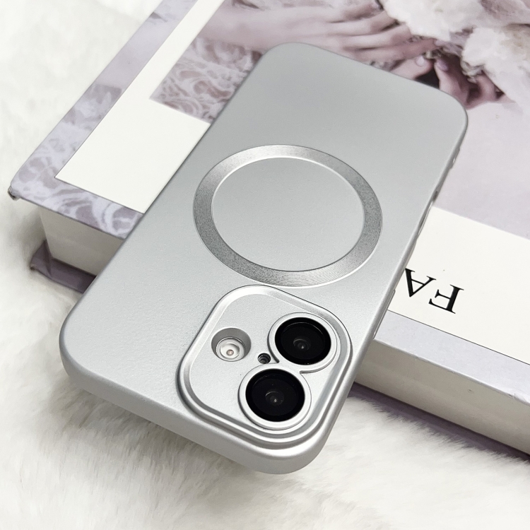 Funda para Teléfono TPU Magsafe iPhone 15 Textura Cd Pintura Metalizada (Plateada)