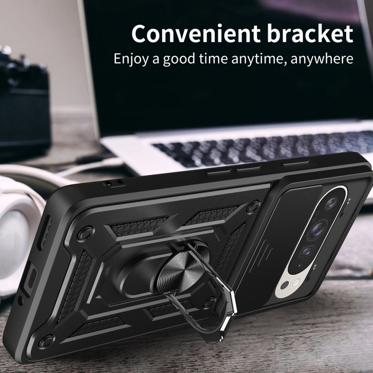 Funda para Google Pixel 9/9 Pro de TPU + PC con Cubierta de Cámara Deslizante (Negra)