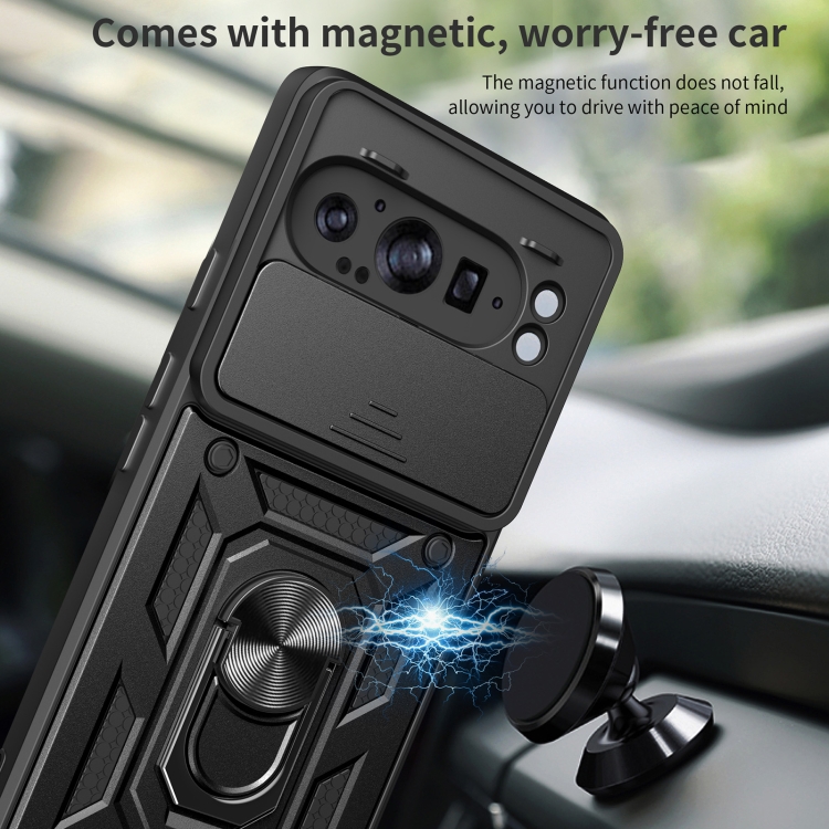 Funda para Google Pixel 9 Pro XL de TPU + PC con Cubierta Deslizante para Cámara (Verde)