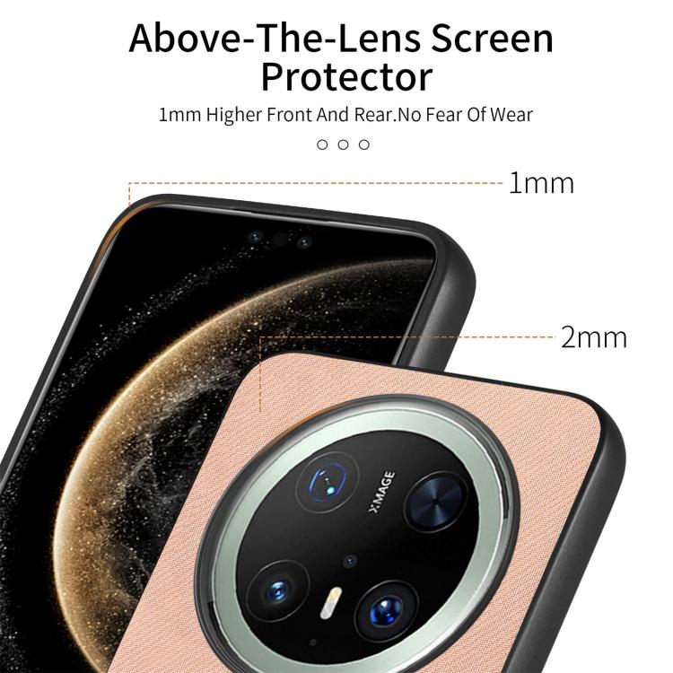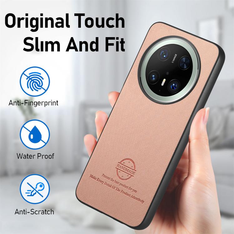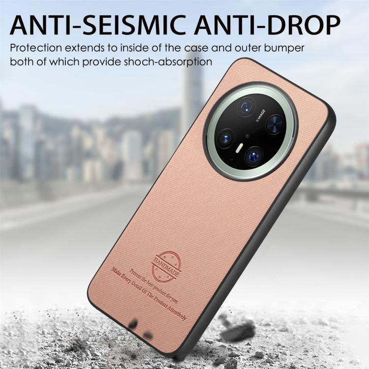 Funda para Teléfono Huawei Mate 70 con Parte Trasera de Piel y Tejido de Sarga (Rosa)