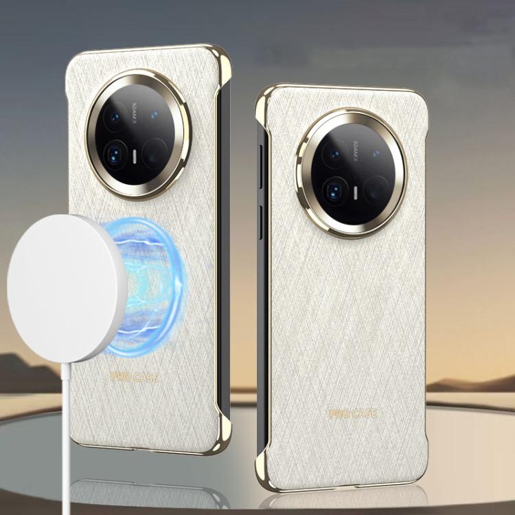 Funda para Teléfono Huawei Mate 70 Gkk Cuero Galvanizado sin Bordes con Magsafe (Brocado Plateado y Blanco)