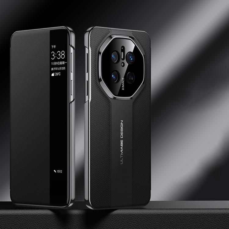 Funda para Teléfono Huawei Mate 70 Smart View con Diseño Imitación Ventana (Negra)