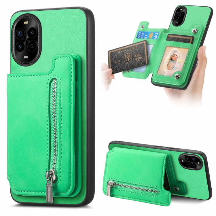 Funda para Huawei Nova 13 Pro con Cremallera Magsafe, Tarjetero y Funda Trasera (Verde)