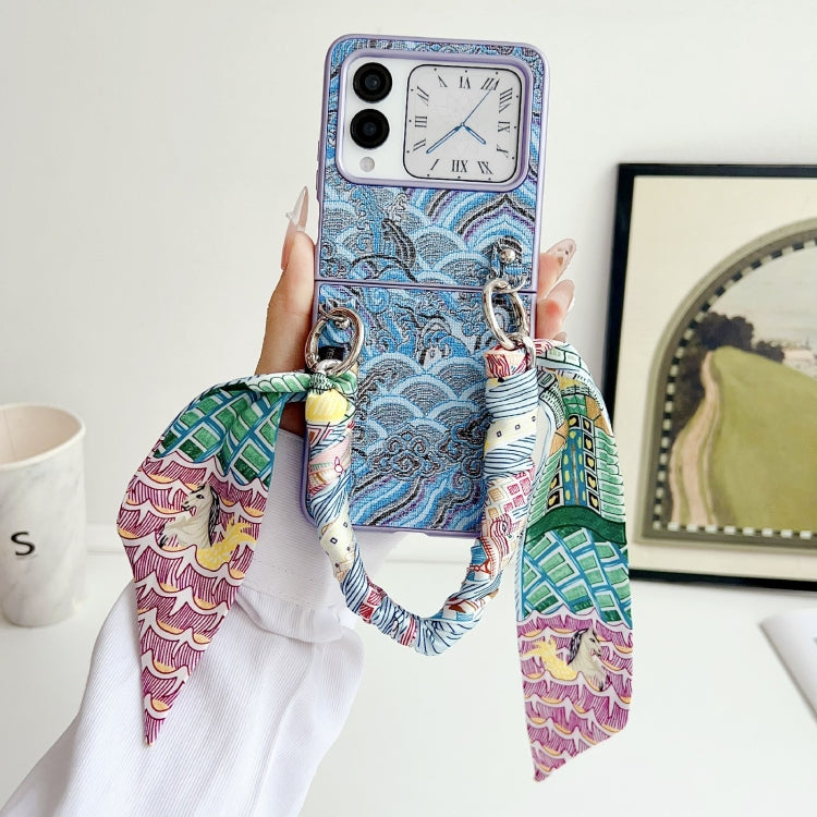 Funda para Teléfono Huawei Nova Flip Bordado Nubes Cobertura Total con Bufanda y Pulsera (Azul)