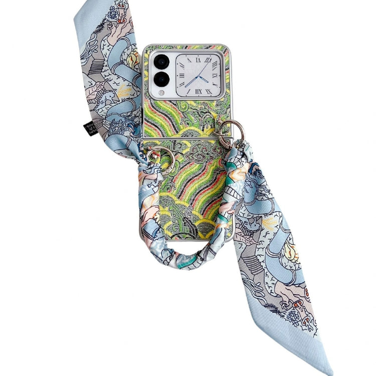 Funda para Teléfono Huawei Nova Flip con Bordado Nubes Cobertura Total Bufanda/Pulsera (Verde)