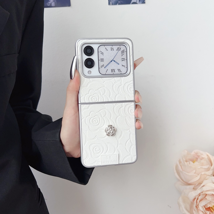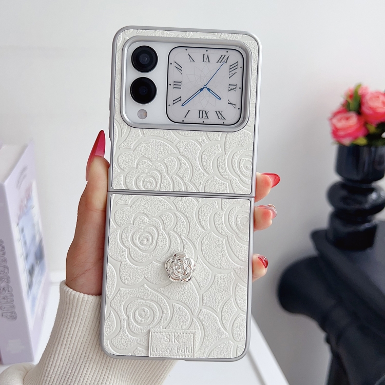 Funda para Teléfono Huawei Nova Flip con Diseño de Cuadros 3D de Camelia (Blanca)