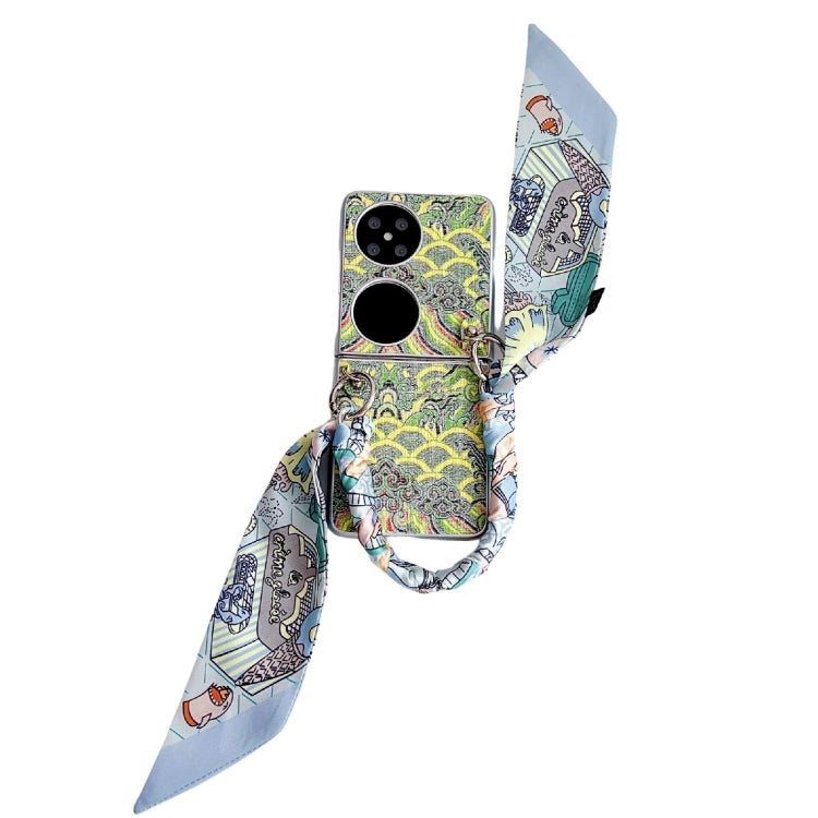 Funda para Teléfono Huawei P50 Pocket Bordado Nubes Cobertura Total con Bufanda y Pulsera (Verde)
