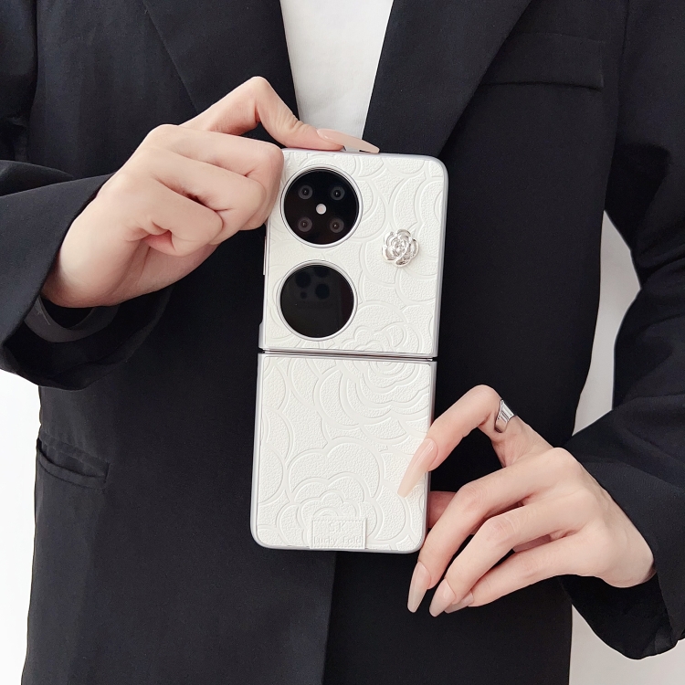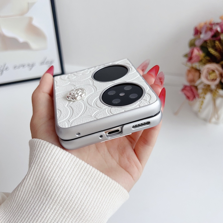 Funda para Teléfono Huawei P50 Pocket Diseño Cuadros 3D Camelia (Blanca)