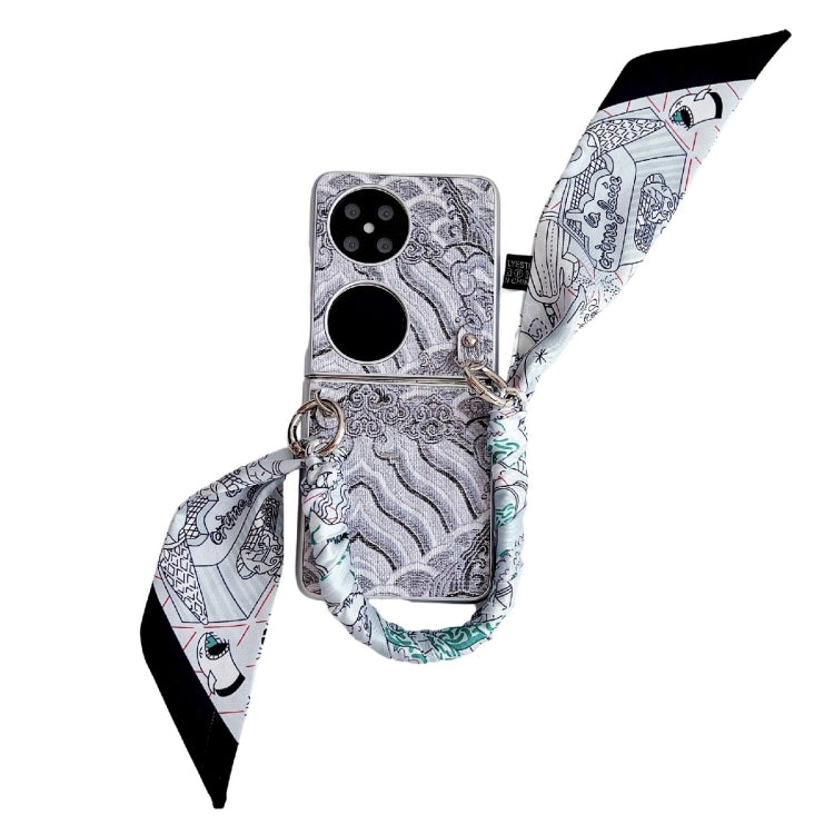 Funda para Teléfono Huawei Pocket 2 con Bordado de Nubes y Cobertura Total con Bufanda/Pulsera (Gris)