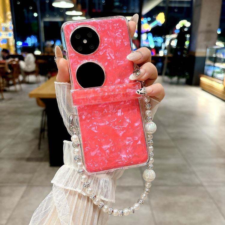 Funda para Teléfono Huawei Pocket 2 Textura Perlada Tres Piezas con Pulsera (Roja)
