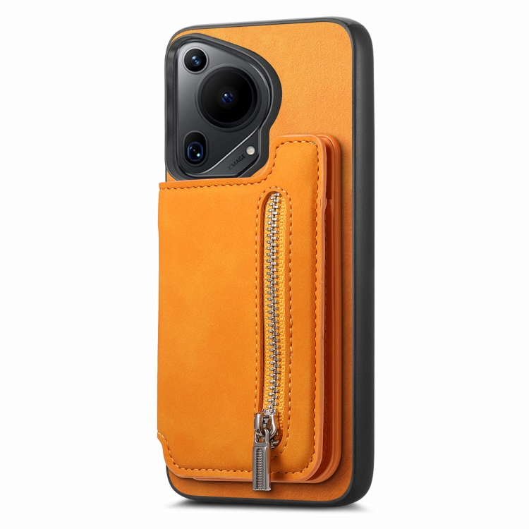 Funda para Teléfono Huawei Pura 70 Pro con Cremallera Magsafe Retro Tarjetero y Bolsillo (Amarillo)