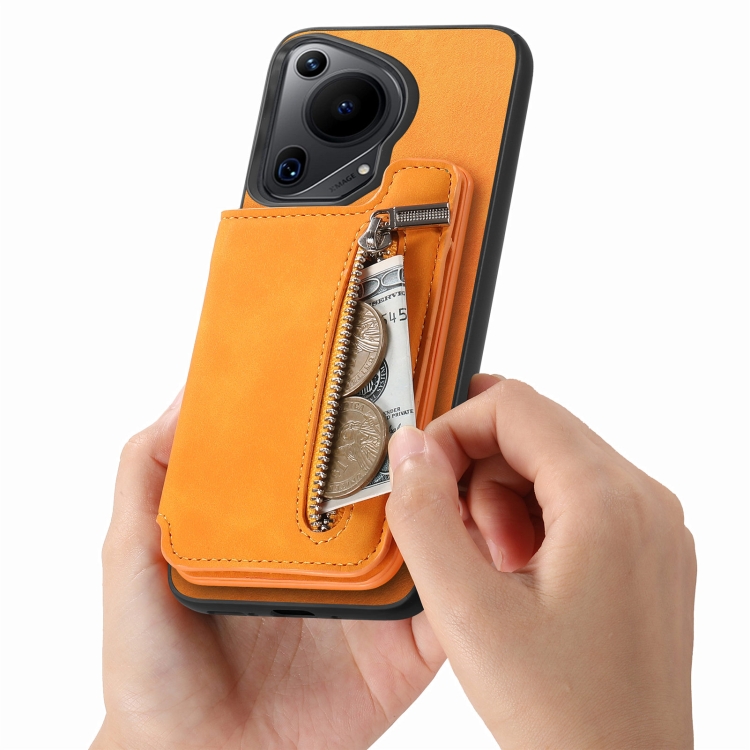 Funda para Teléfono Huawei Pura 70 Pro+ con Cremallera Magsafe, Tarjetero y Bolsillo (Amarillo)
