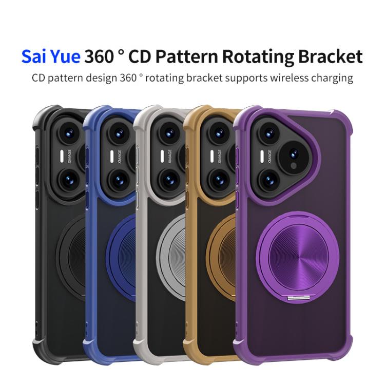 Funda para Teléfono Huawei Pura 70 Pro con Soporte Giratorio 360° y Textura Cd Magsafe (Negra)