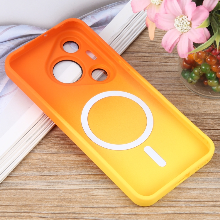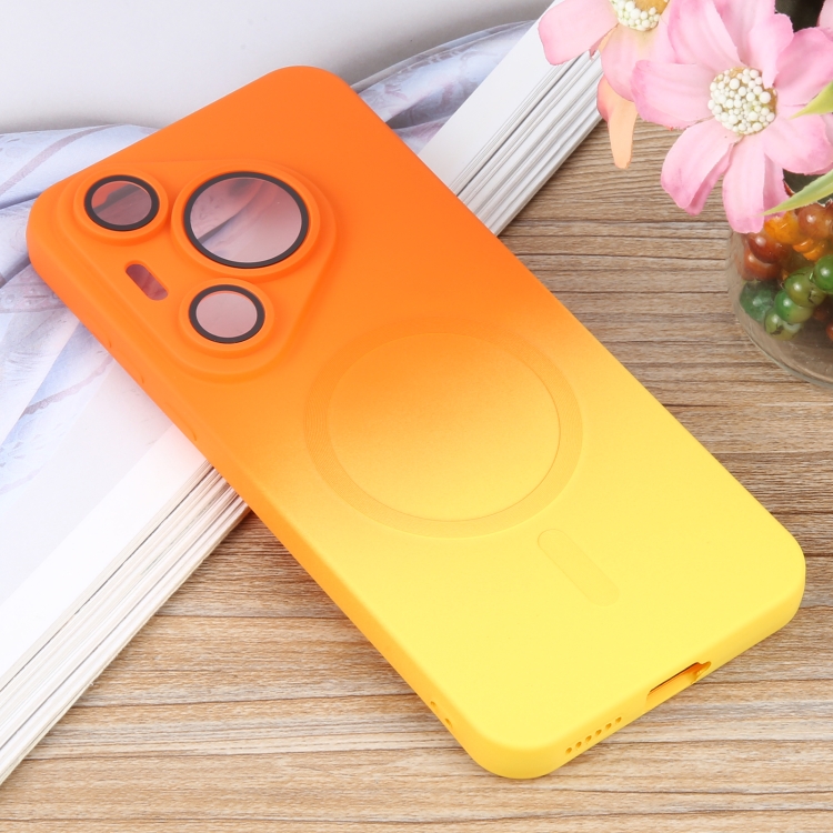 Funda para Teléfono Huawei Pura 70 Pro Silicona Líquida TPU Degradado Magsafe (Naranja y Amarillo)