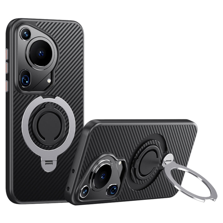Funda para Teléfono Huawei Pura 70 Ultra Fibra de Carbono Magsafe Soporte Giratorio 360 (Negro y Plateado)