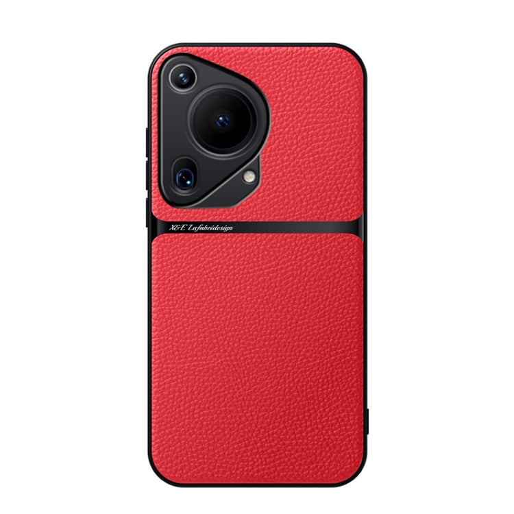 Funda para Teléfono Huawei Pura 70 Ultra Piel de Lichi Cobertura Total Magnética (Roja)