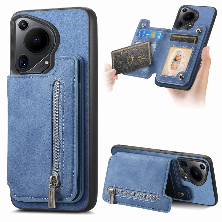 Funda para Teléfono Huawei Pura 70 Ultra Retro con Cremallera Magsafe y Tarjetero (Azul)