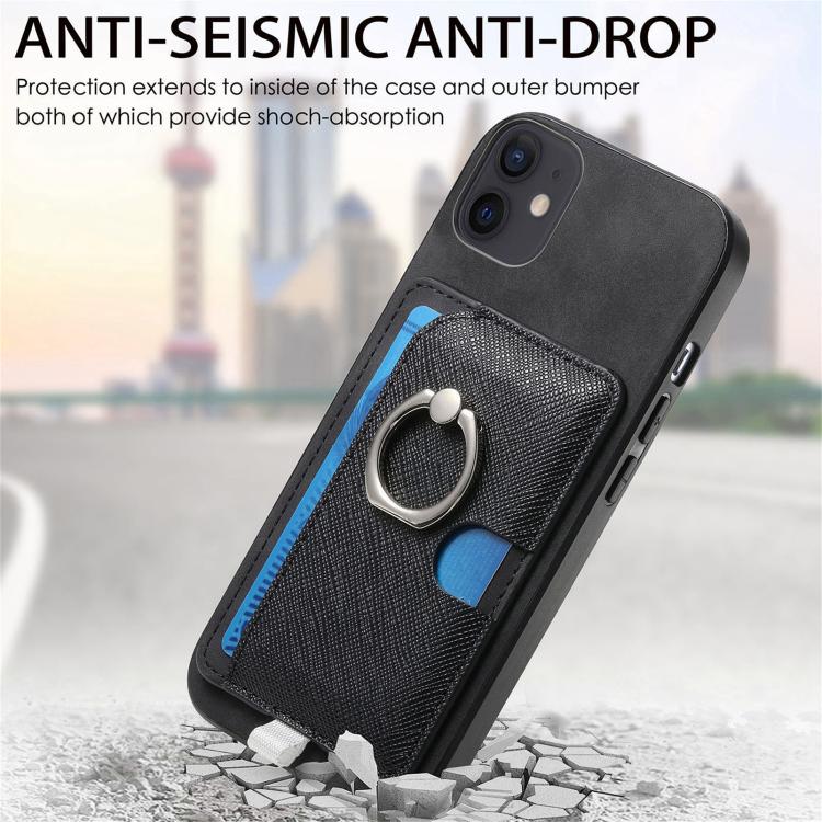 Funda para Teléfono Magsafe iPhone 12/12 Pro Anillo Lateral Cuero Cruz Retro (Negro)