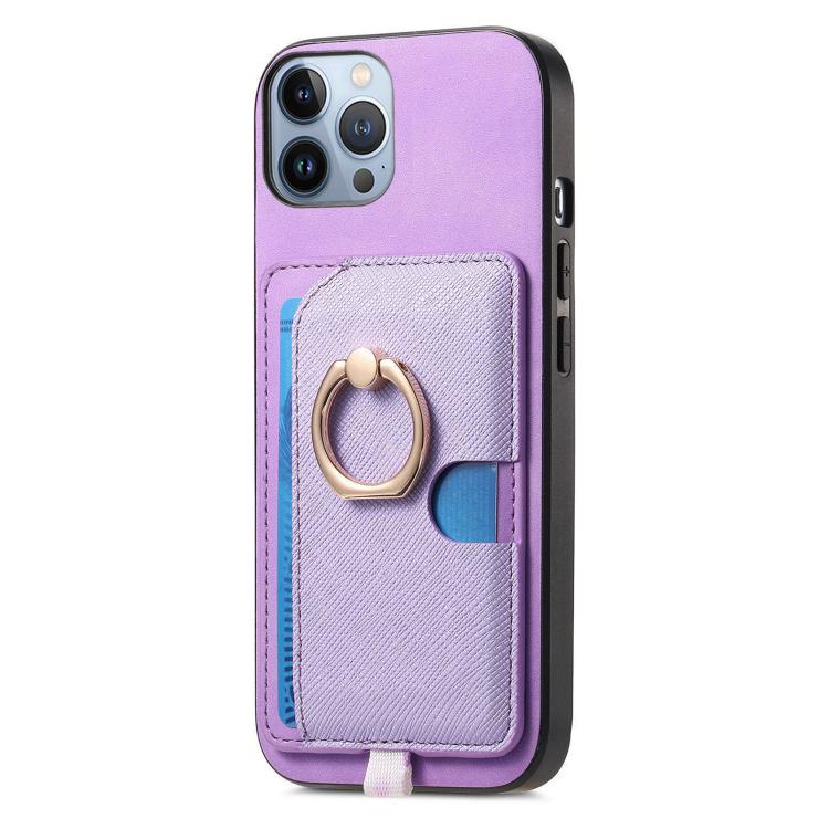 Funda para Teléfono Magsafe Cuero con Anillo Lateral Cruz Retro iPhone 12 Pro Max (Morado)