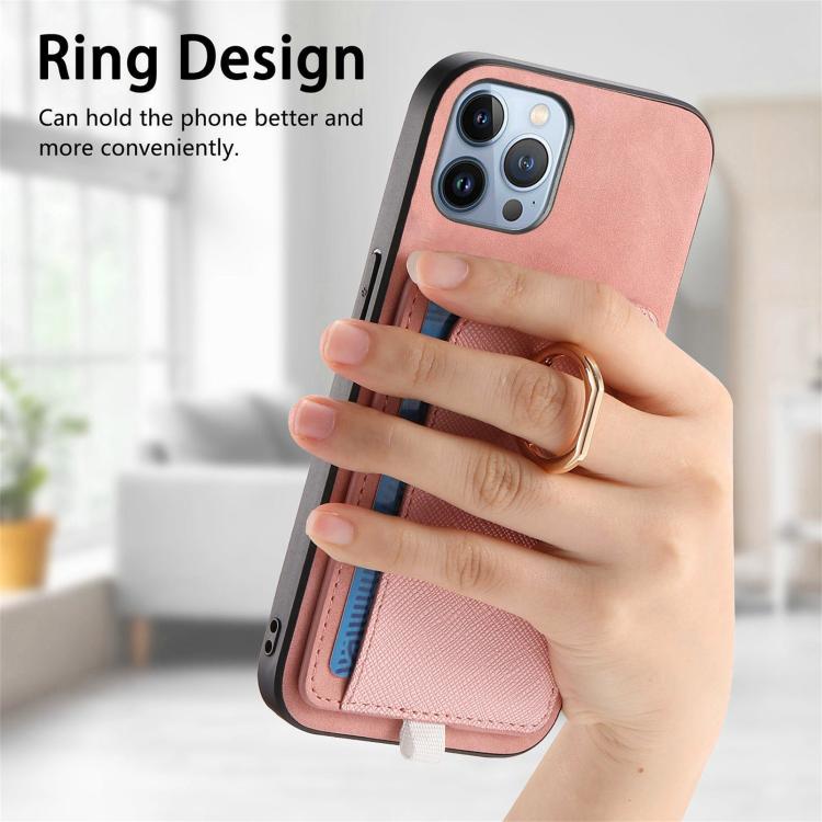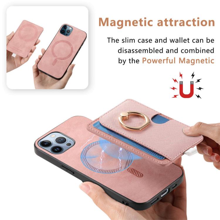 Funda para Teléfono Magsafe con Anillo Lateral de Cuero con Cruz Retro para iPhone 12 Pro Max (Rosa)