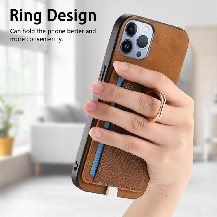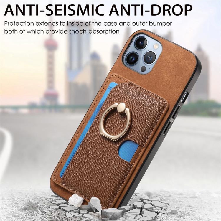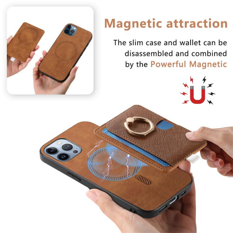 Funda para Teléfono Magsafe con Anillo de Cuero Cruz Retro para iPhone 12 Pro Max (Marrón)