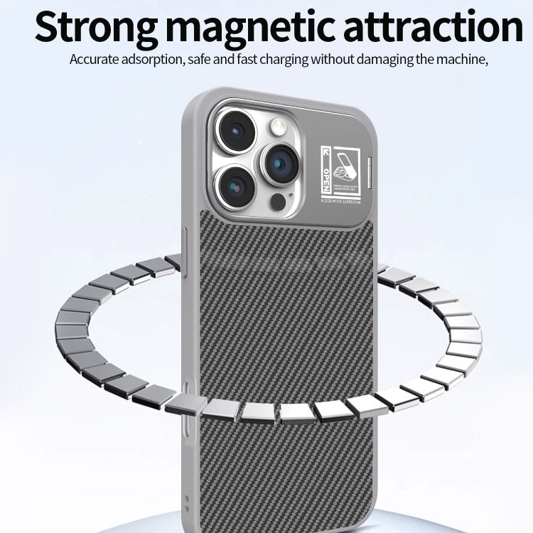 Funda para Teléfono Magsafe Fibra de Carbono con Soporte Plegable para iPhone 15 Pro Max (Gris)