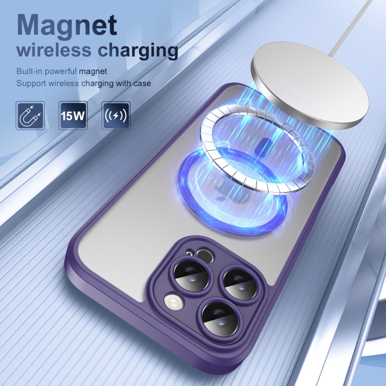 Funda para Teléfono Magsafe Translúcida Esmerilada con Botón Ai para iPhone 16 Pro Max (Morado)