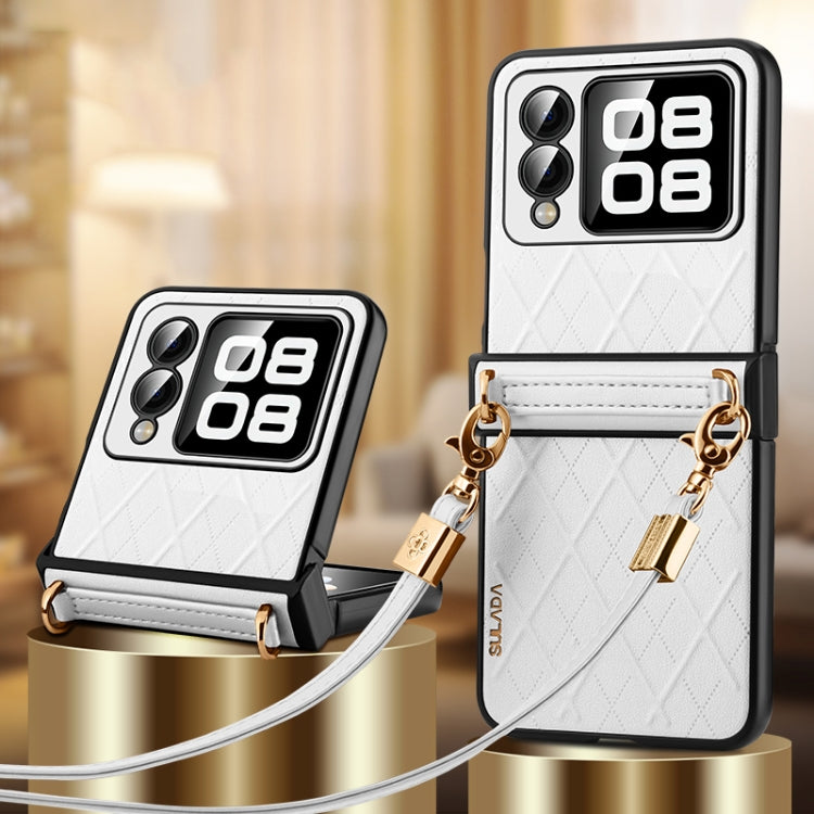 Funda para Teléfono Plegable Huawei Nova Flip con Textura Rómbica y Cordón (Blanco)