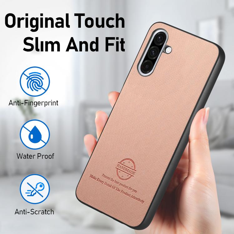 Funda para Teléfono Samsung Galaxy A16 Parte Trasera de Piel y Tejido de Sarga (Rosa)