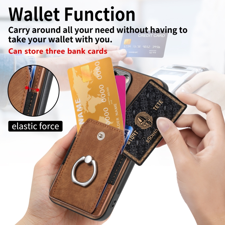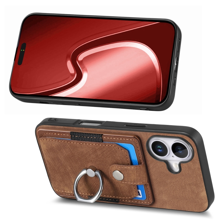 Funda para Teléfono Tipo Billetera con Anillo y Tarjetero para iPhone 16 Plus (Marrón)