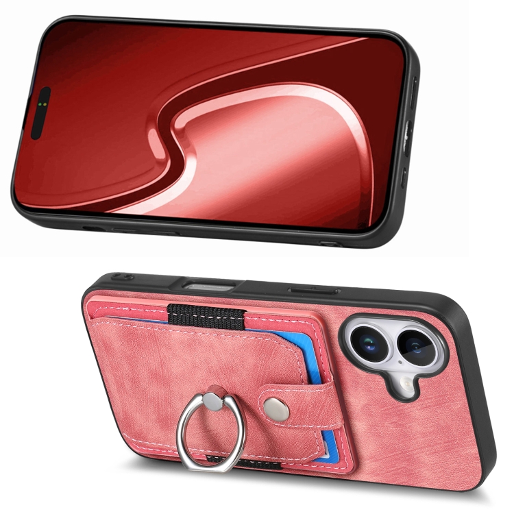 Funda para Teléfono Tipo Billetera con Anillo y Tarjetero para iPhone 16 Plus (Rosa)