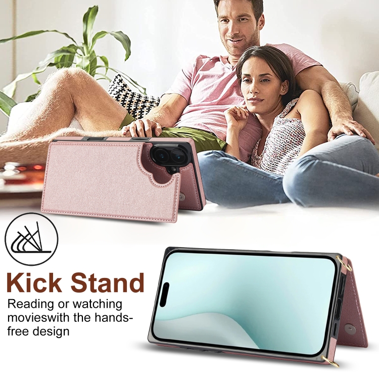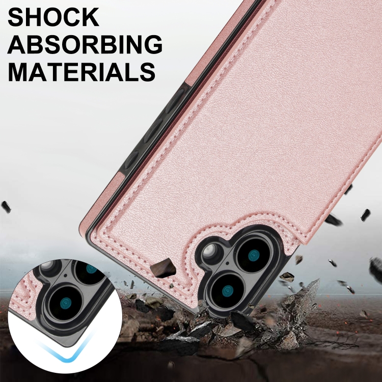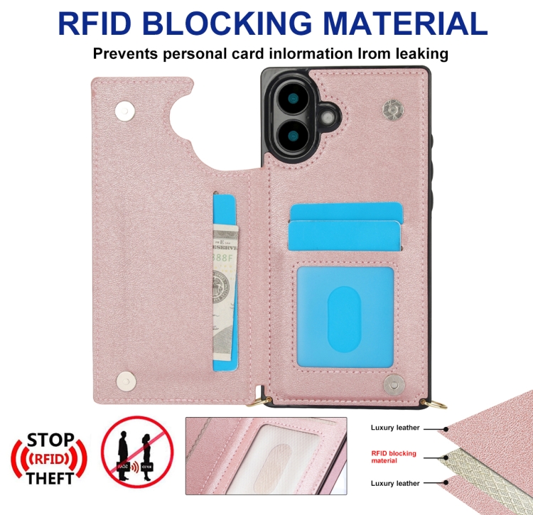 Funda para Teléfono Tipo Billetera con Tapa y Hebillas Cruzadas para iPhone 16 (Oro Rosa)