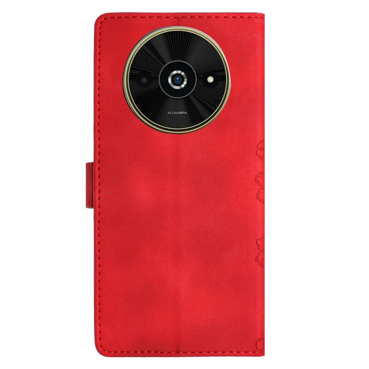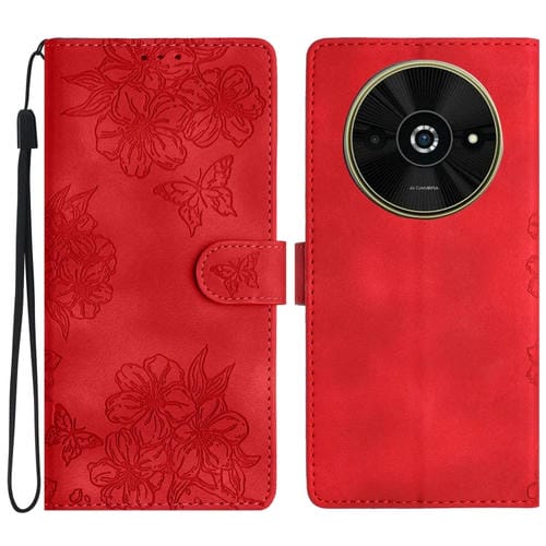 Funda para Teléfono Xiaomi Poco C61 con Diseño de Mariposa y Flor de Cerezo En Relieve de Pu (Rojo)