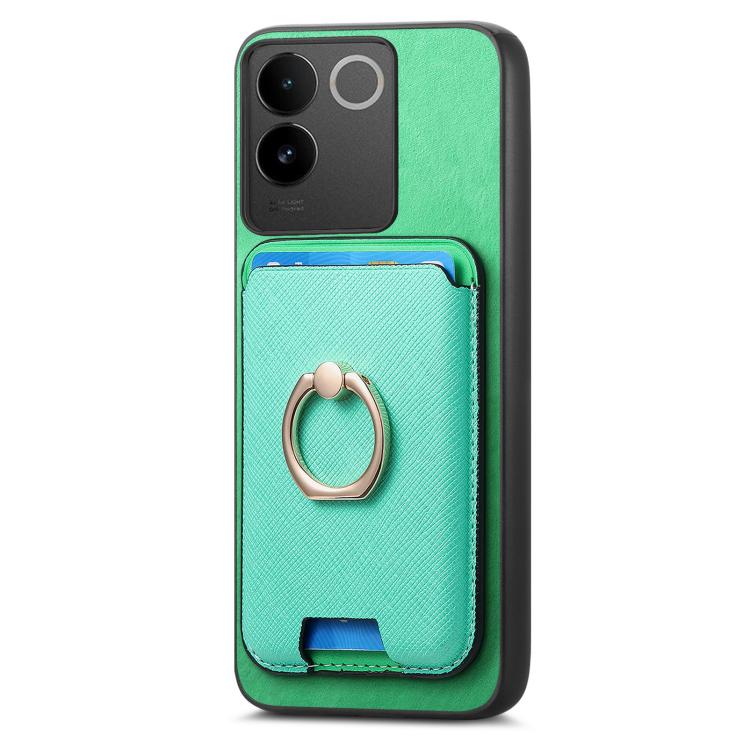 Funda para Vivo Iqoo Neo9/9 Pro 5G con Anillo de Cuero Retro Cruzado, Inserto Vertical para Tarjetas, Magsafe (Verde)