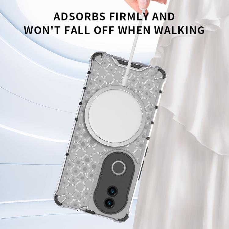 Funda para Vivo V50 5G Global Honeycomb con Anillo Magnético a Prueba de Golpes (Roja)