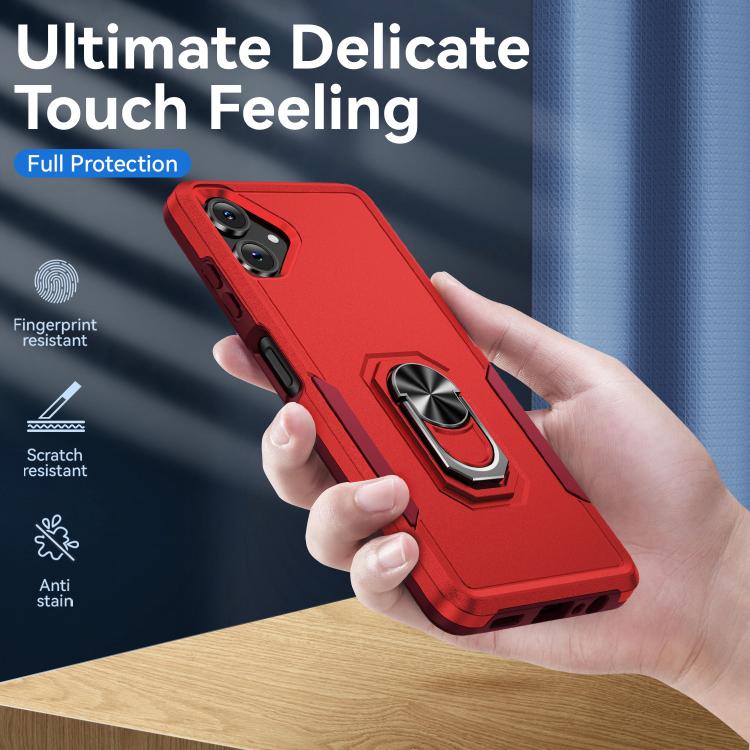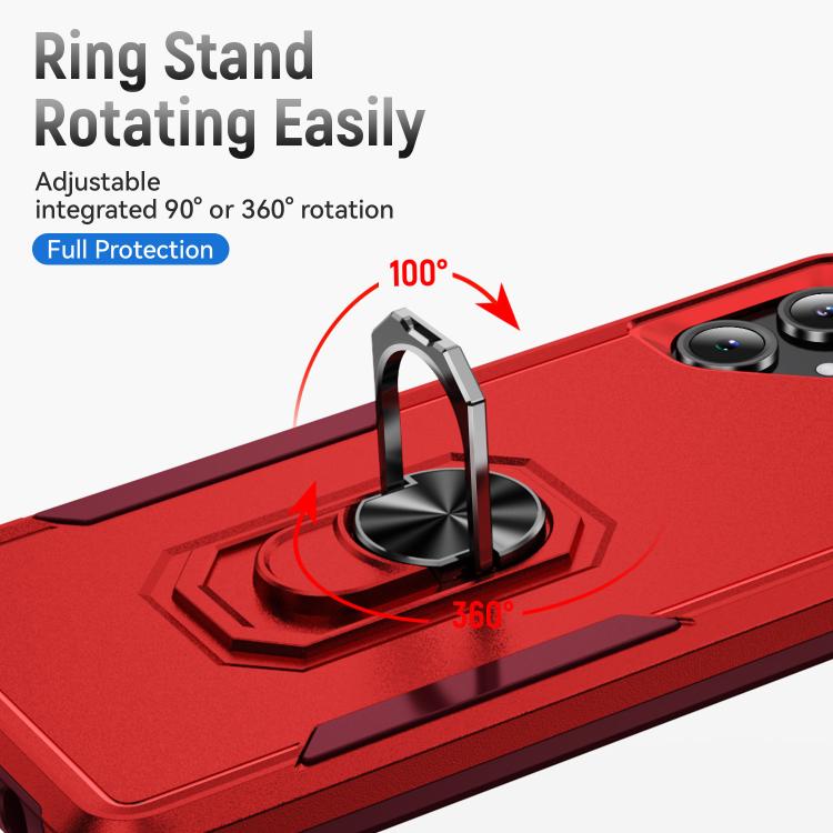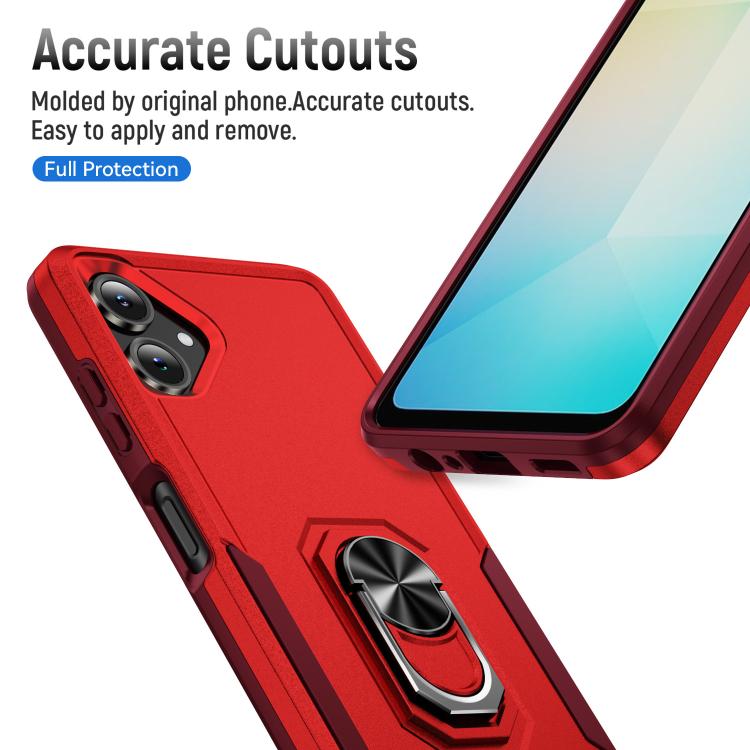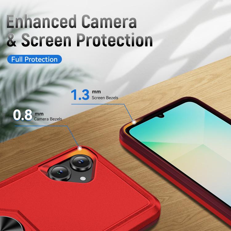 Funda Pioneer Armor de PC y TPU resistente con soporte para Samsung Galaxy A06 4G/5G (rojo y rosa)