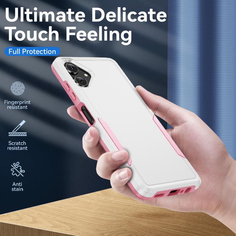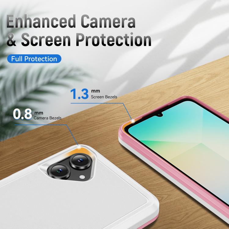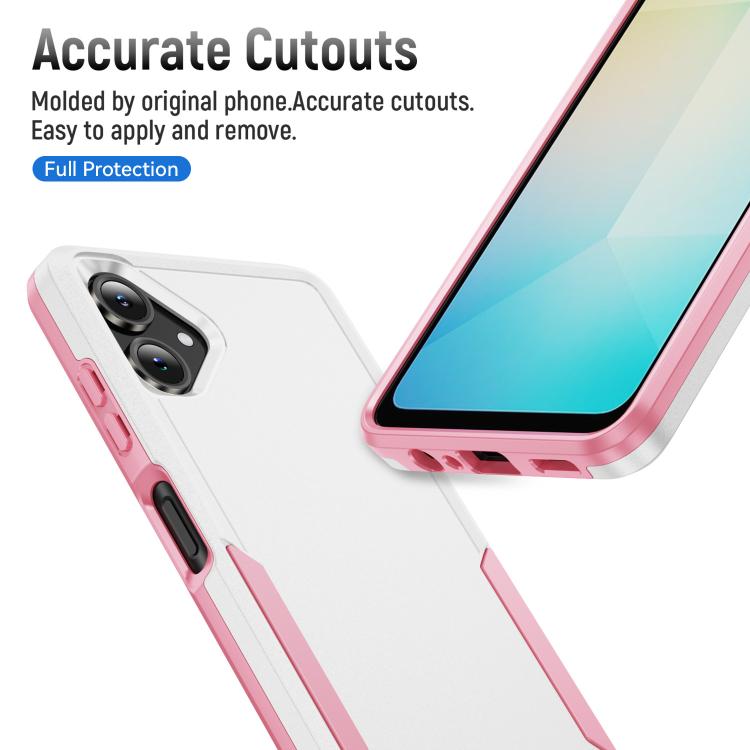 Funda Pioneer Armor de PC y TPU resistente para Samsung Galaxy A06 4G/5G (blanco y rosa)