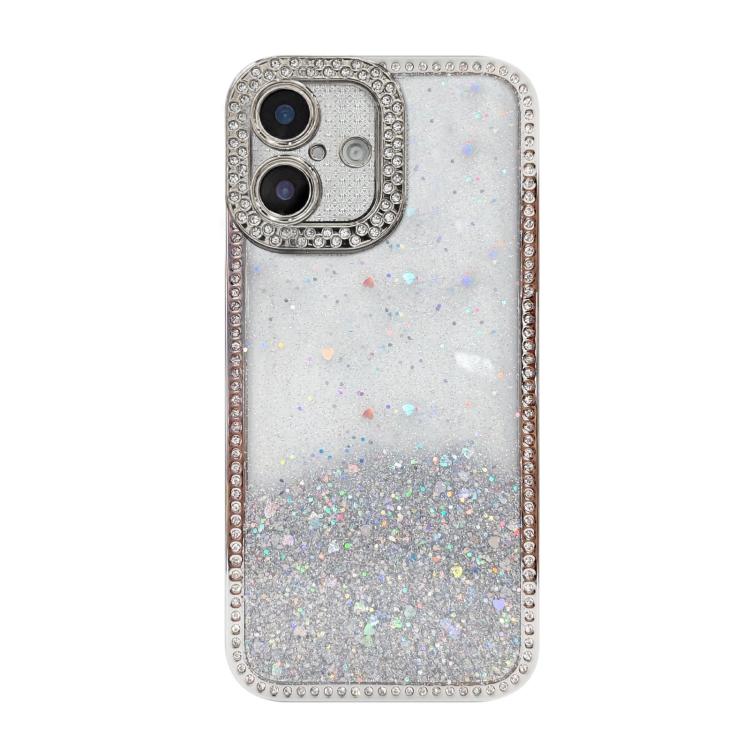 Funda plateada con lentejuelas y purpurina con degradado de diamante para iPhone 17 (plateada)