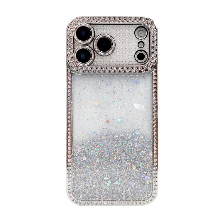 Funda plateada con lentejuelas y purpurina con degradado de diamante para iPhone 17 Pro Max (plateada)