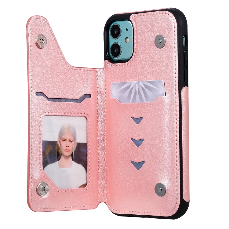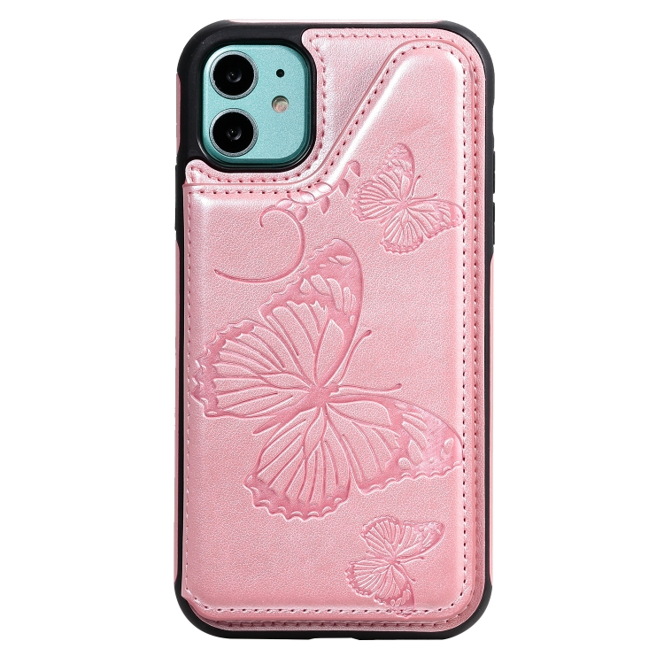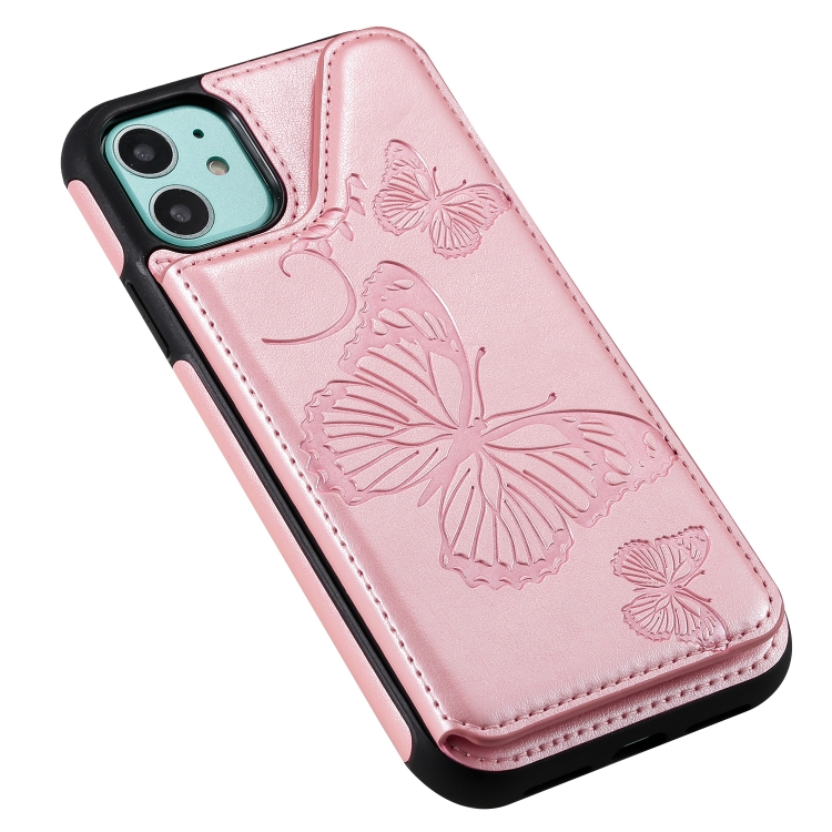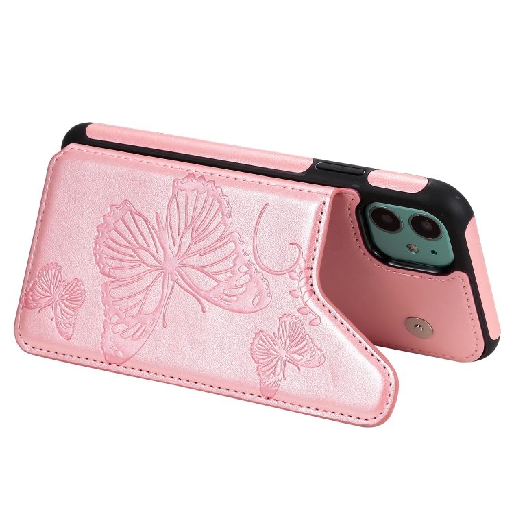 Funda Protectora iPhone 11 Pro Patrón Mariposa Soporte Ranuras Tarjetas Marco Fotos (Oro Rosa)