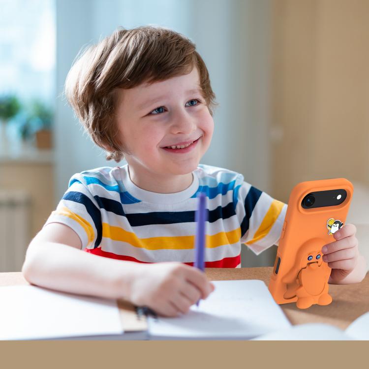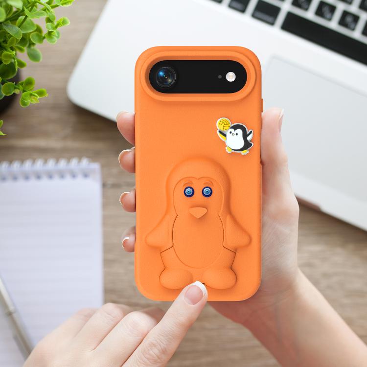 Funda protectora antigolpes de EVA con diseño de pingüino bebé para iPhone Air con soporte (naranja)
