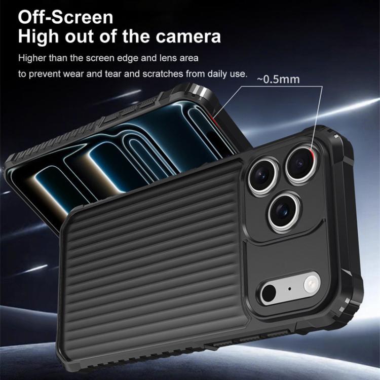 Funda protectora antigolpes War Shadow Stripe Series con airbag y acabado esmerilado para iPhone 17 Pro Max (Gris)