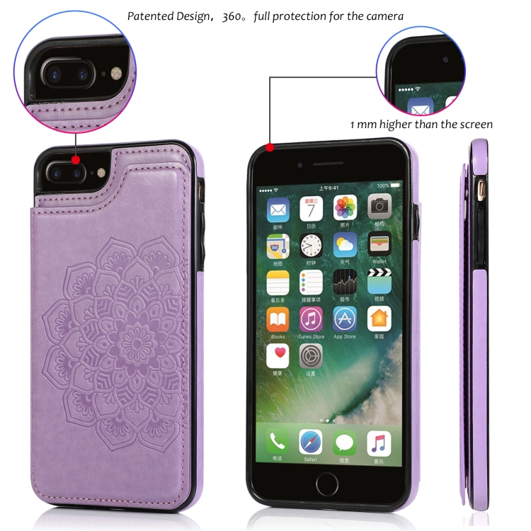Funda Protectora iPhone 7 Plus 8 Plus PU TPU Mandala Doble Hebilla Ranuras Soporte Marco